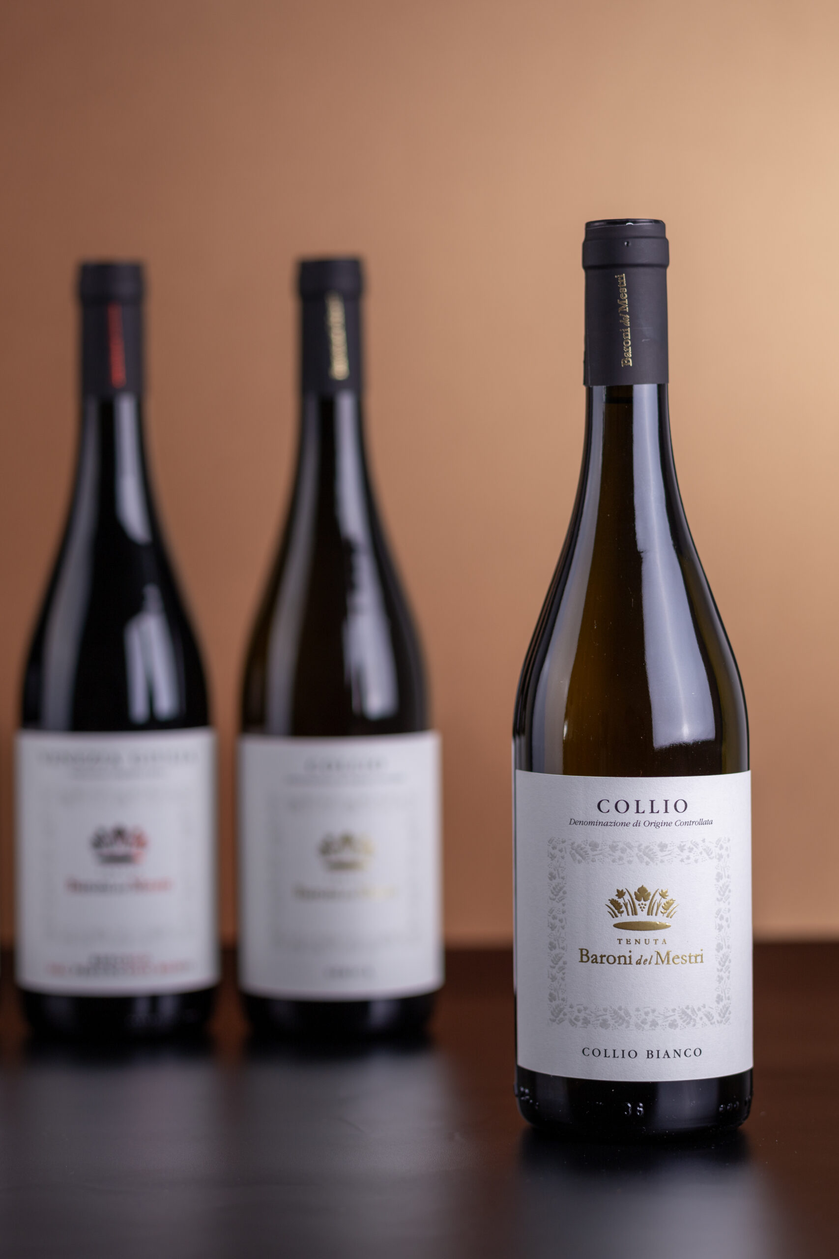 Un’estetica pulita e misurata che dà forma, in modo diretto, al carattere dei vini Baroni del Mestri.