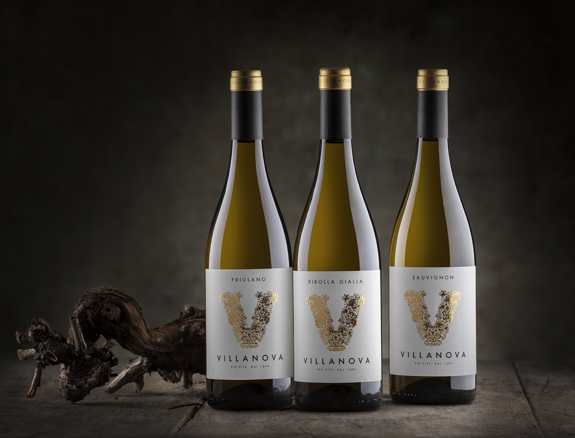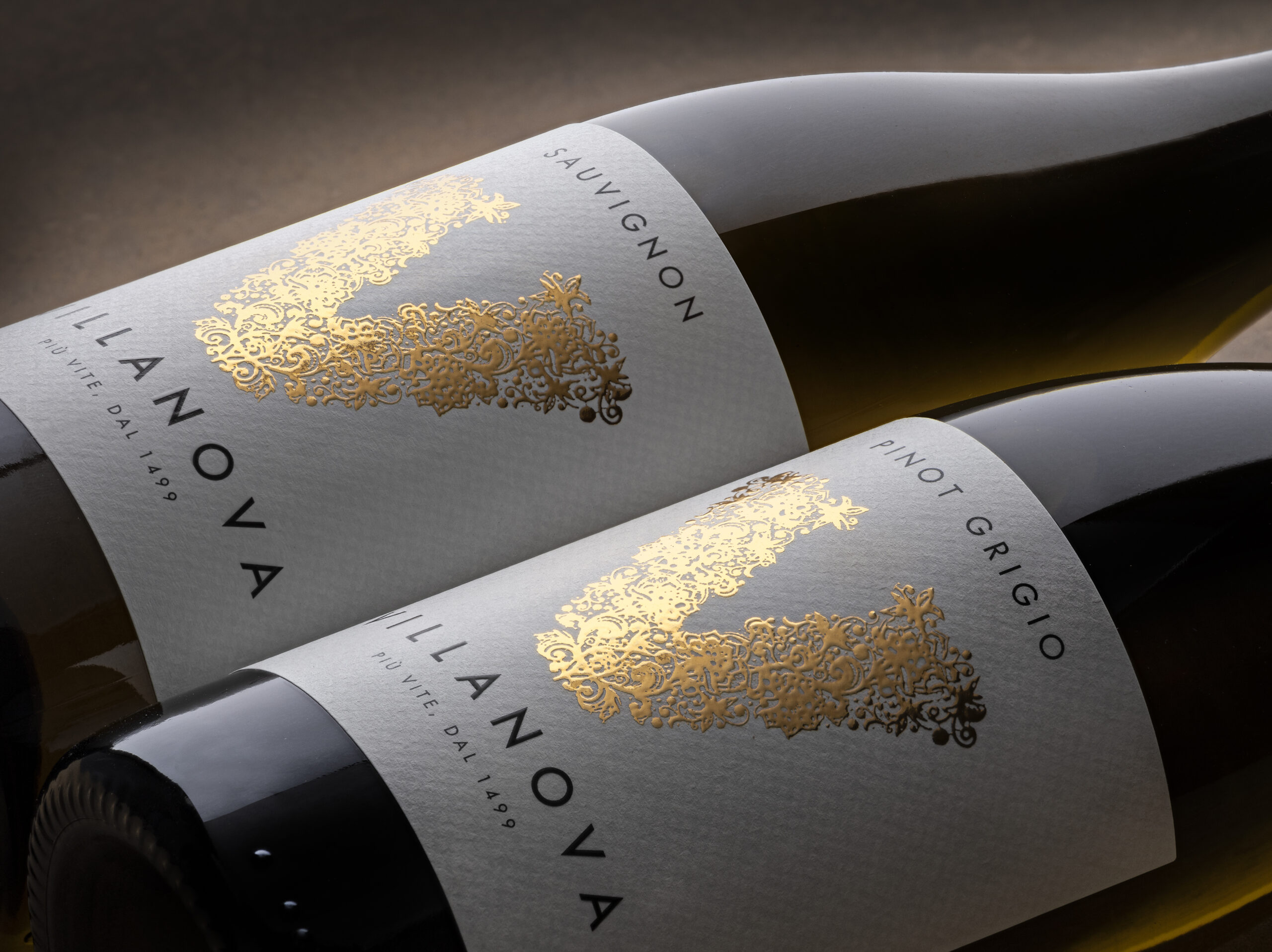 Il concept è nato dall’idea di comunicare questa linea di vini Collio come opere realizzate da “ricamatori di vigneti”. Abbiamo perciò modellato la V come un merletto, ispirandoci a questa alta forma di espressione dell’artigianato goriziano. La trama della lettera è resa in oro colato per dare tattilità, luce e preziosità.