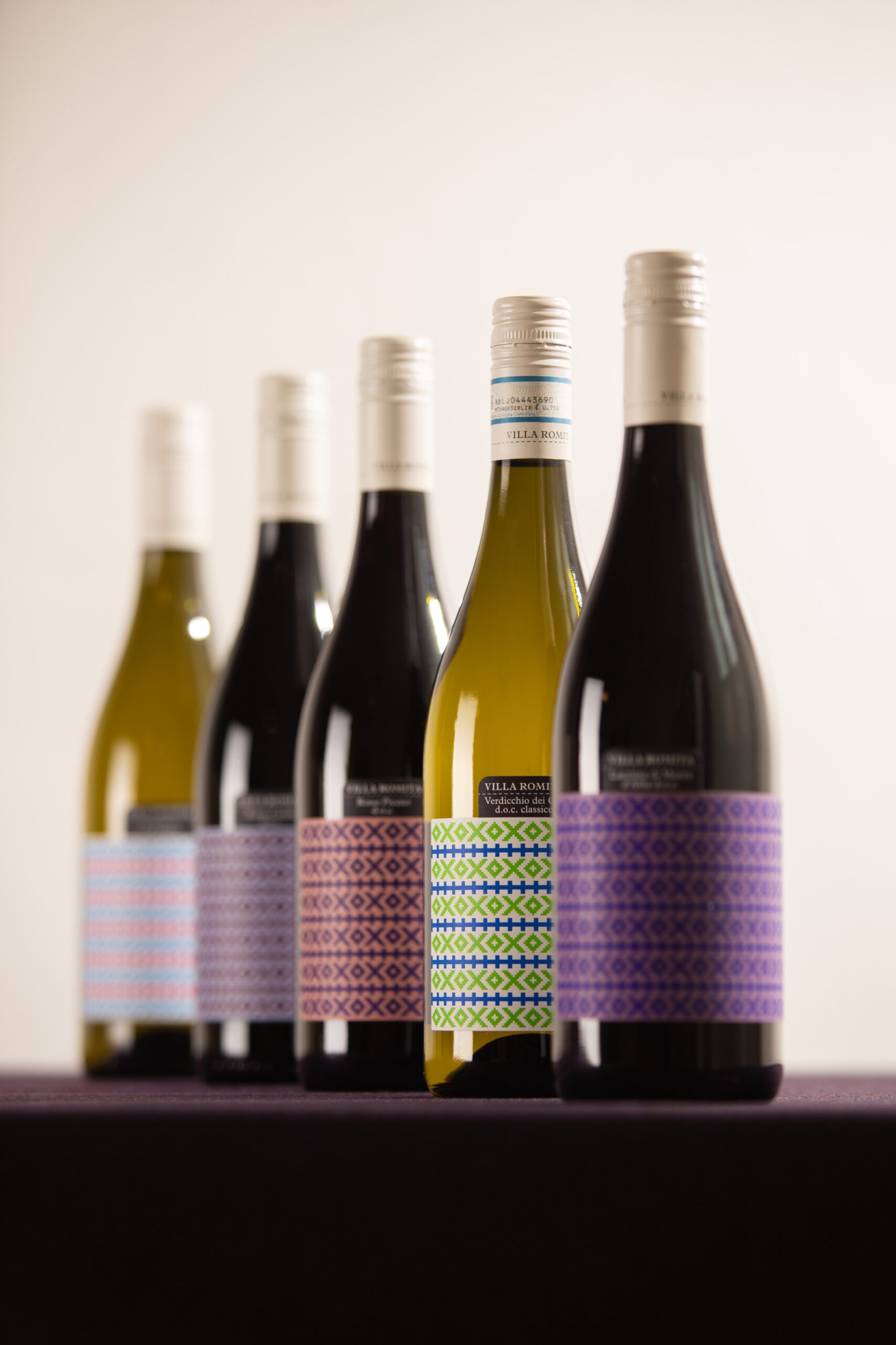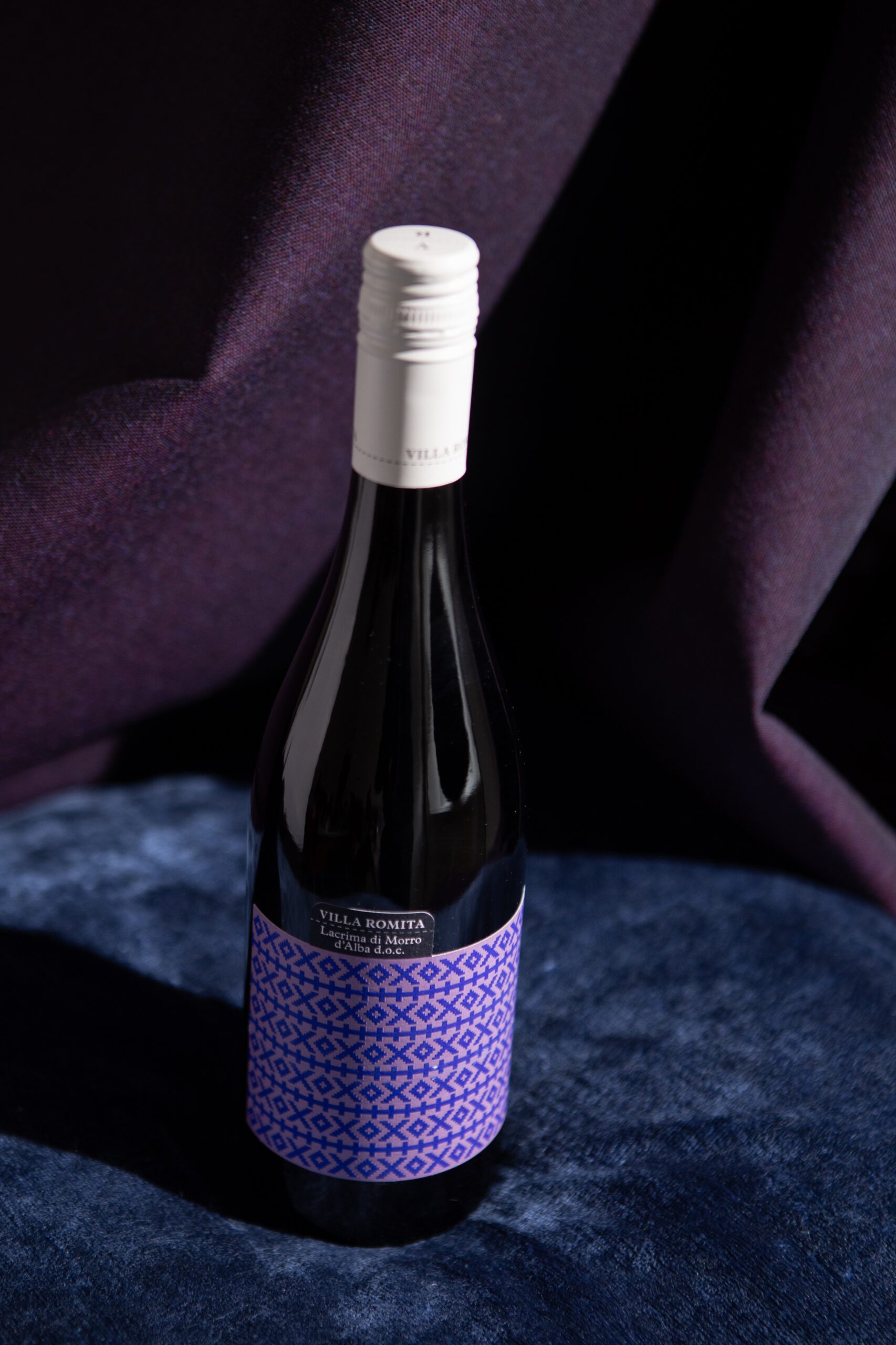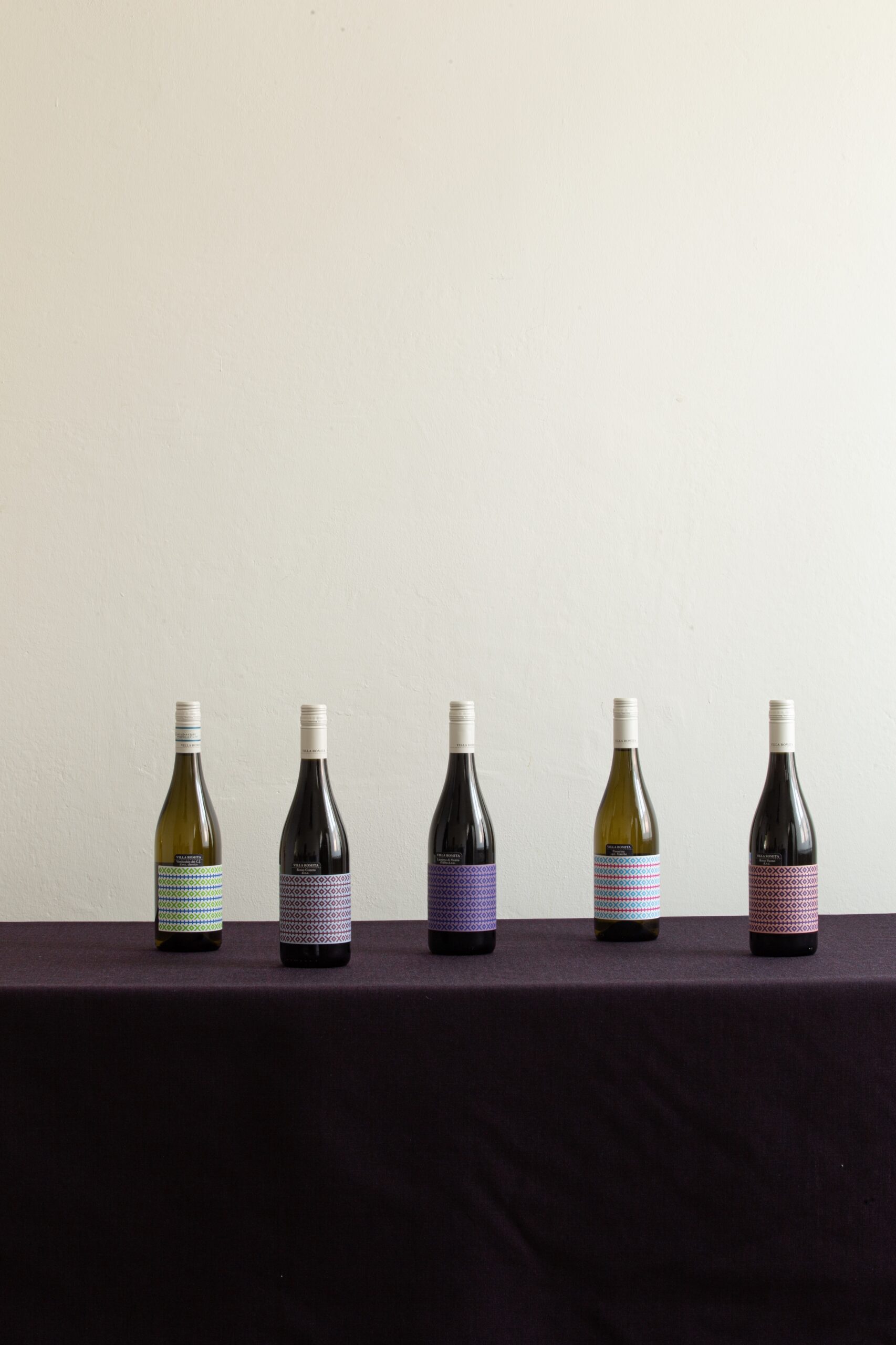 Il concept si ispira ai “liccetti marchigiani”, una tecnica di ricamo tradizionale che appartiene al patrimonio culturale della regione. La trama, reinterpretata in chiave grafica, diventa il cuore dell’etichetta: una fascia continua che avvolge la bottiglia come un tessuto, con un pattern colorato che richiama i motivi artigianali originali.